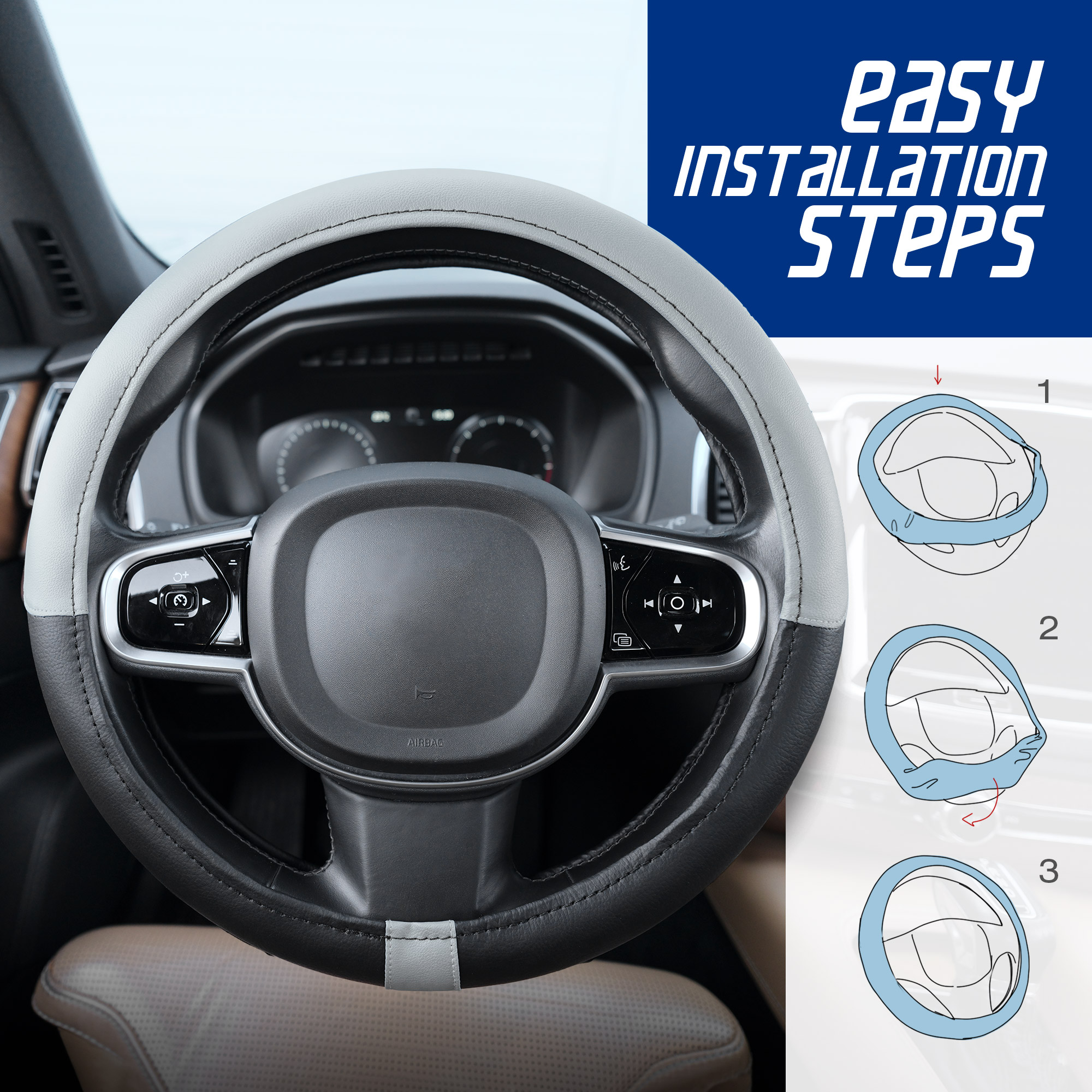 Kan direct over het bestaande stuur/bekleding heen gemonteerd worden