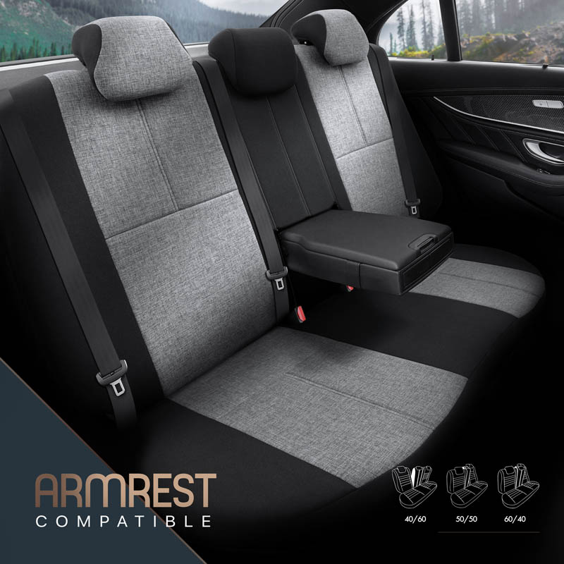 De rugleuning hoes van de achterbank is voorzien van ritsen waardoor je de bank (indien nodig) in delen neer kunt klappen. Hierdoor is het ook mogelijk om je armsteun uit de rugleuning te blijven gebruiken.